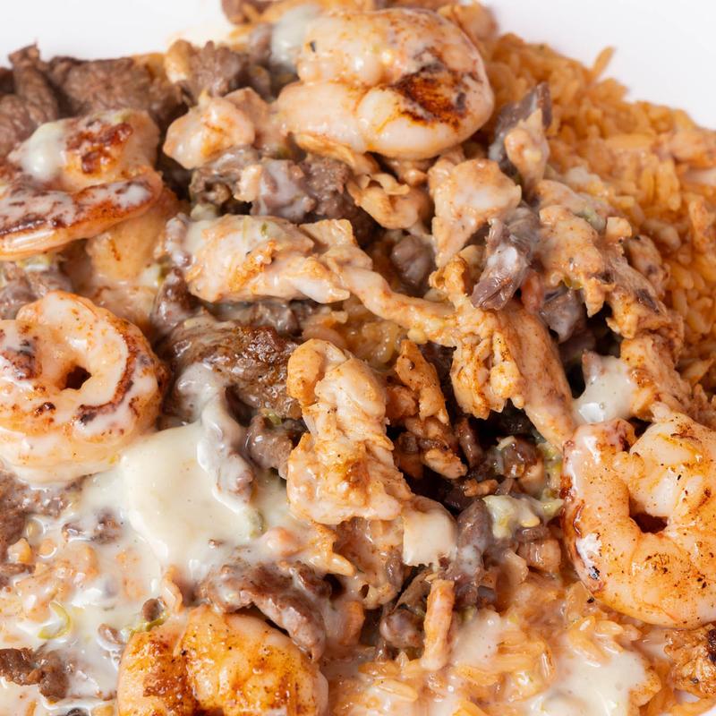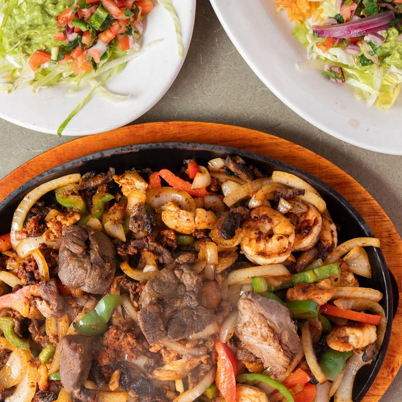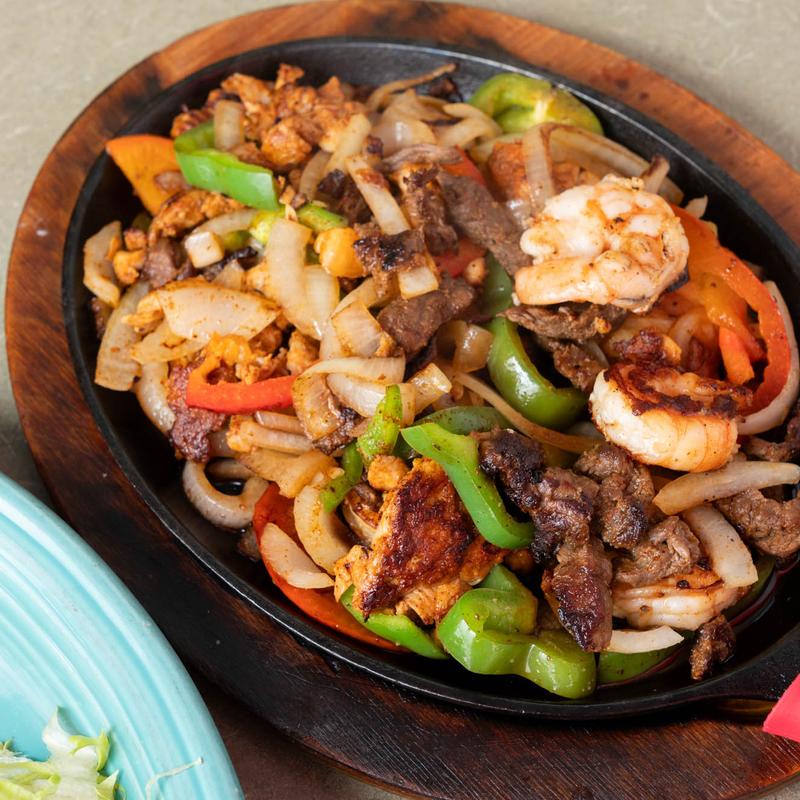Quesadilla filled with strips of steak, chicken, and shrimp grilled like our regular fajitas. Served with lettuce, guacamole salad, and sour cream.