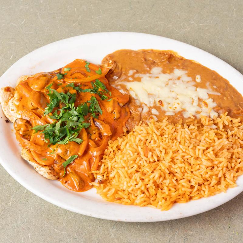 Your choice of steak, chicken, or mixed fajitas. Served with rice, beans, sour cream, lettuce, and tomatoes on the side.