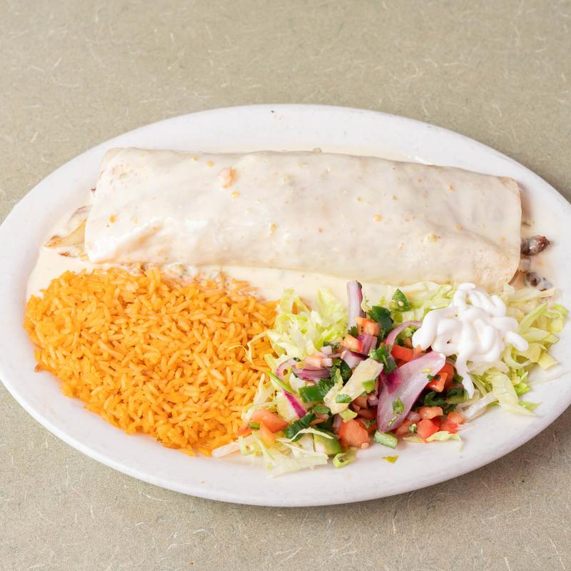Five chimichangas with your choice of beef or chicken. Served with rice, beans, sour cream, lettuce, and tomatoes on the side.